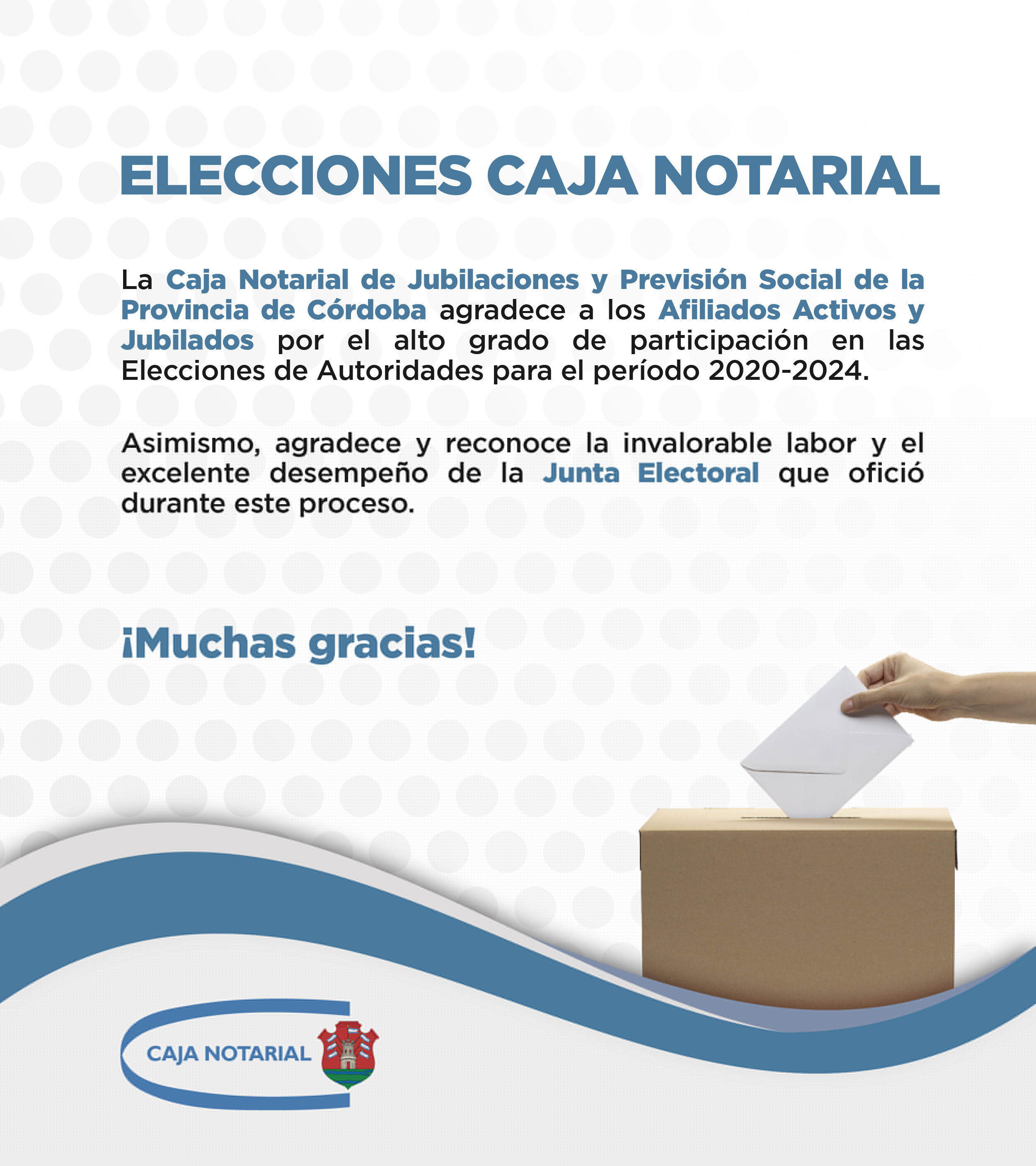 Agradecimiento por participación en Elecciones de Autoridades para el período 2020-2024